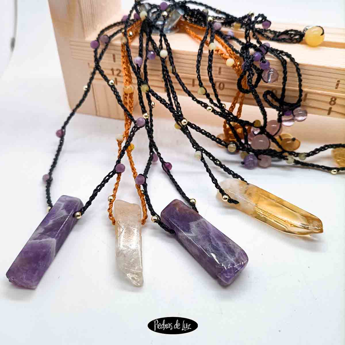 Colgantes Cuarzo Citrino, Amatista, Amazonita y Prehenita