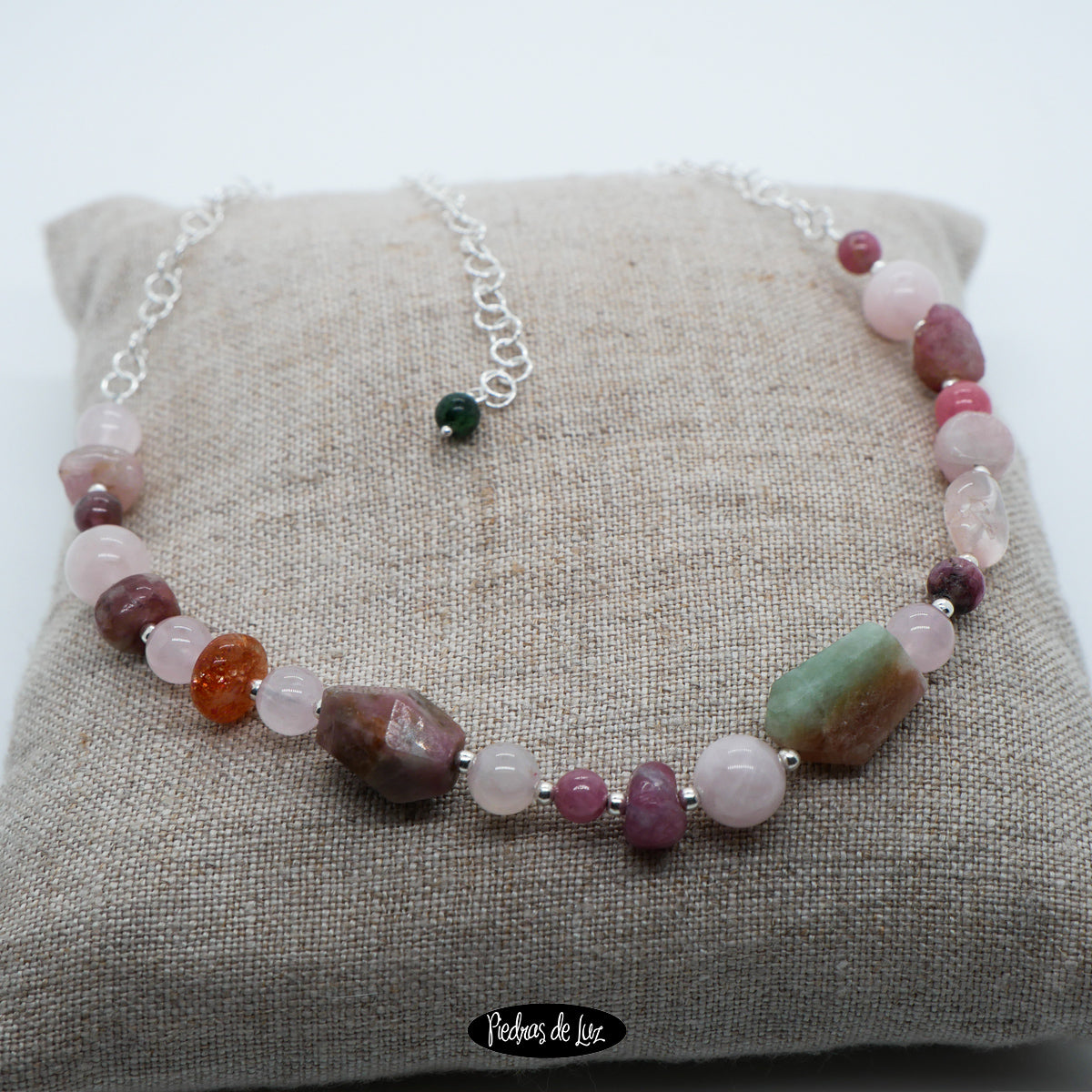Gargantilla Turmalina Sandia - Cuarzo rosa y Rodocrosita