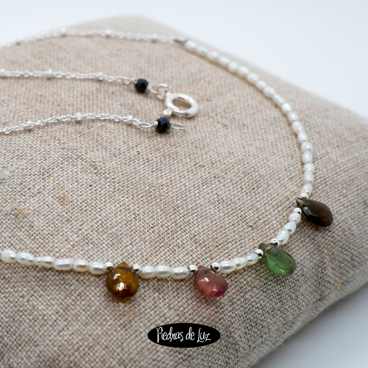 Propiedades: La Turmalina Sandia junto con la Perla ayudan a armonizar y suavizar nuestra energía. Elevan en conjunto nuestra vibración y nuestro atractivo.