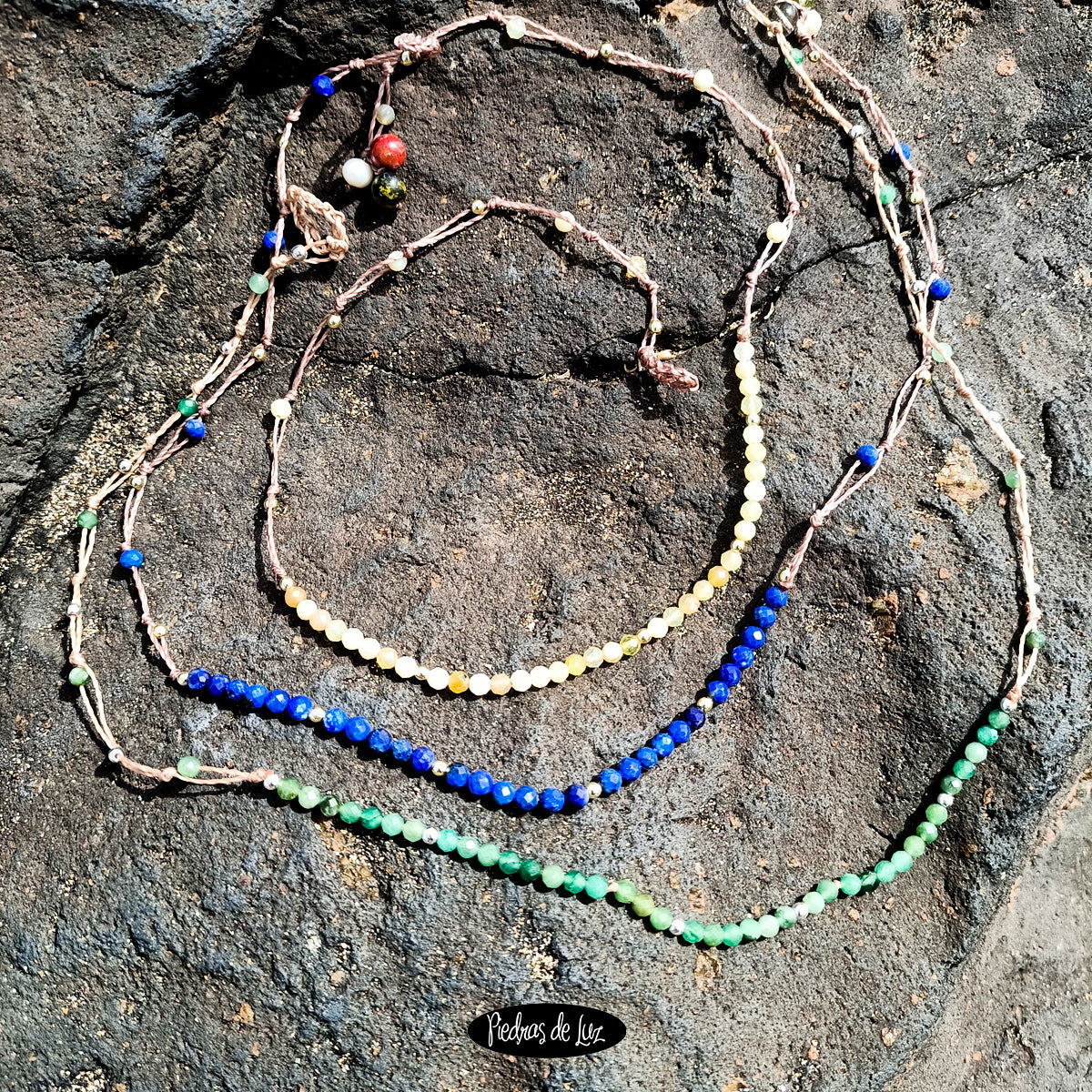 Gargantillas montadas de Hilo. Tenemos de varias piedritas. Coméntanos en tu pedido de que piedra te gustaría.
